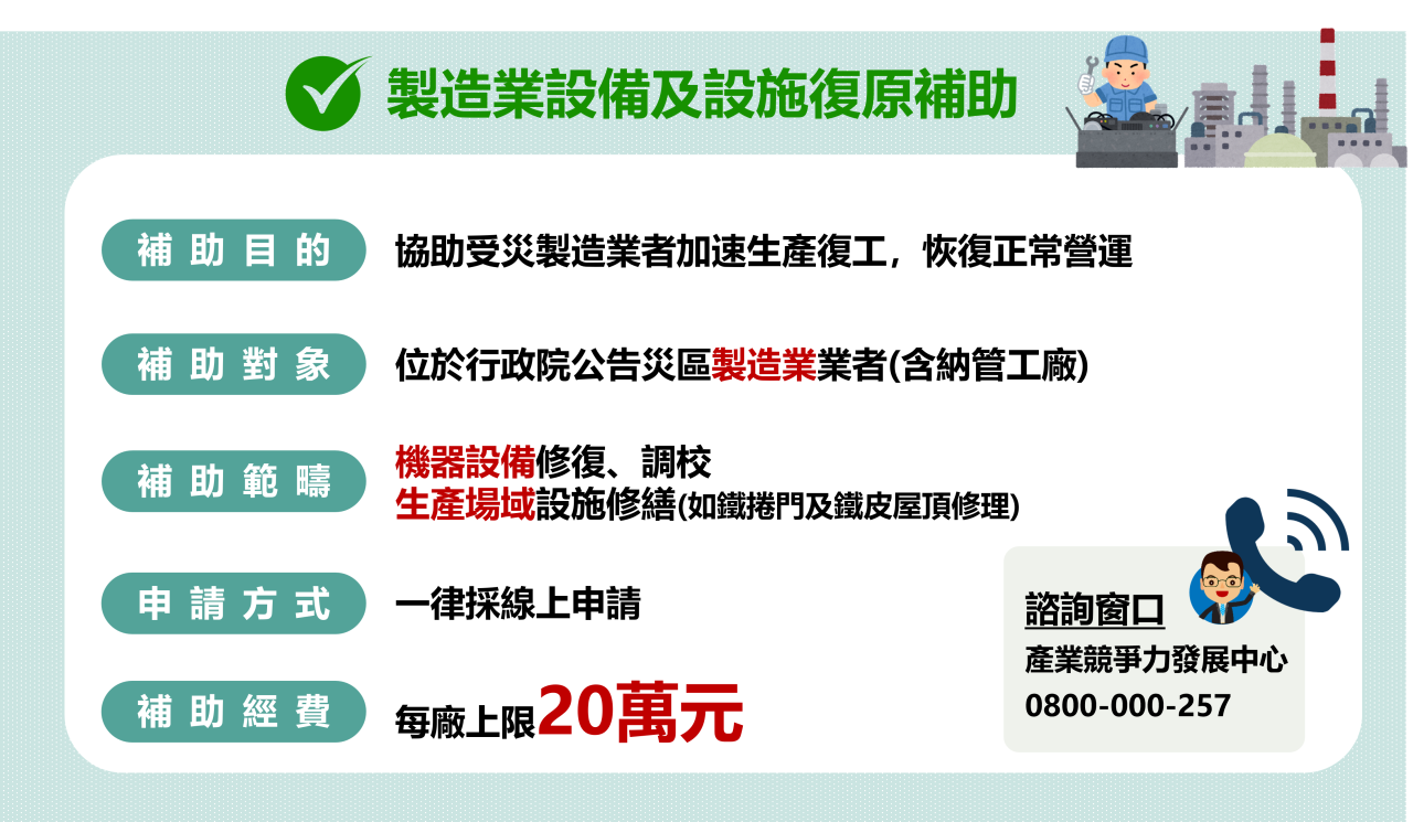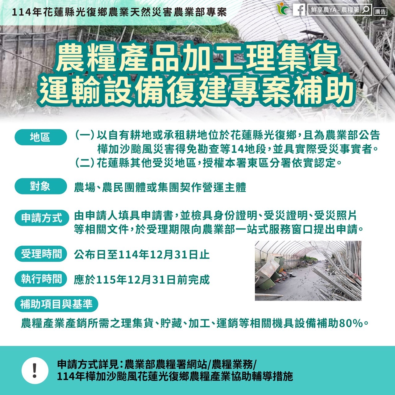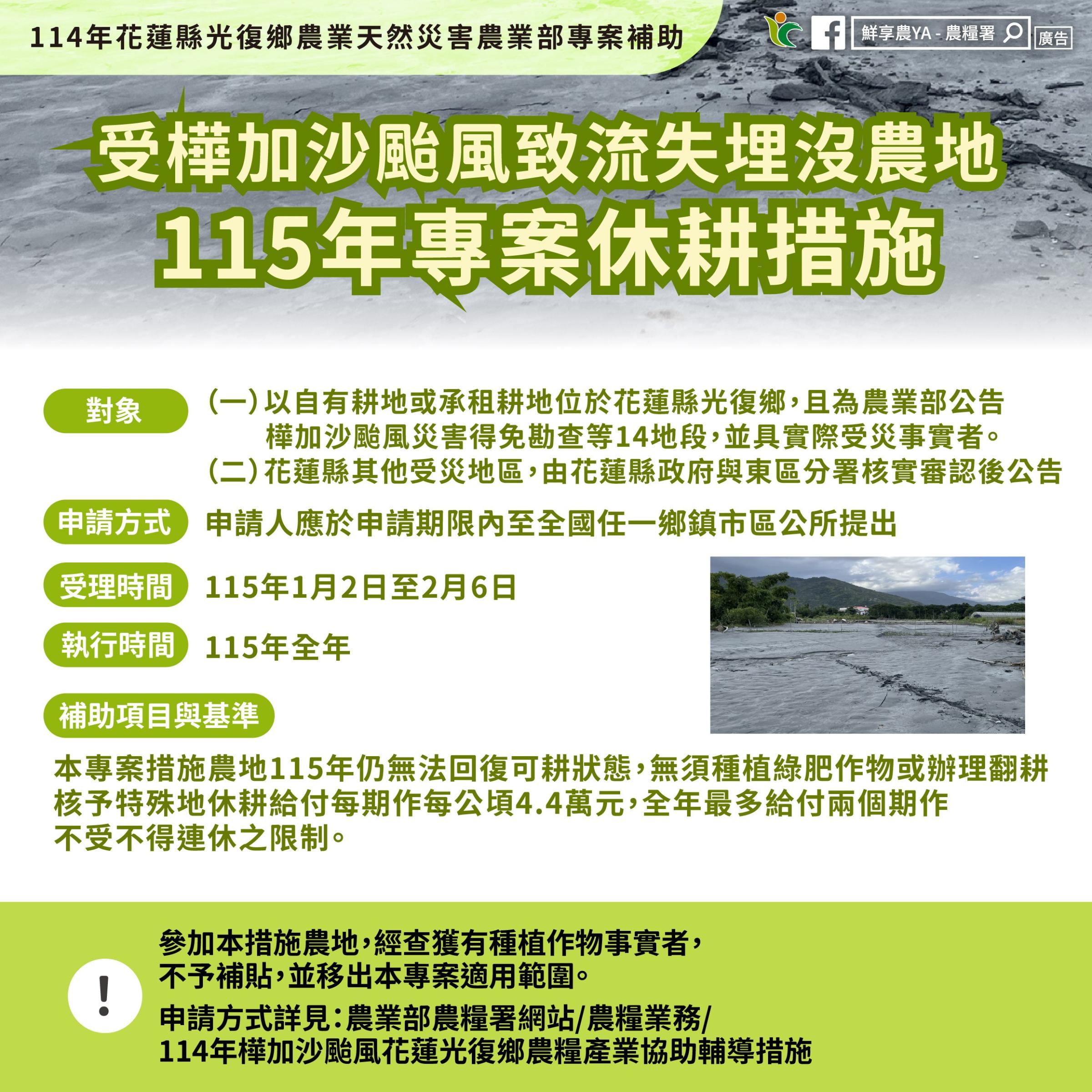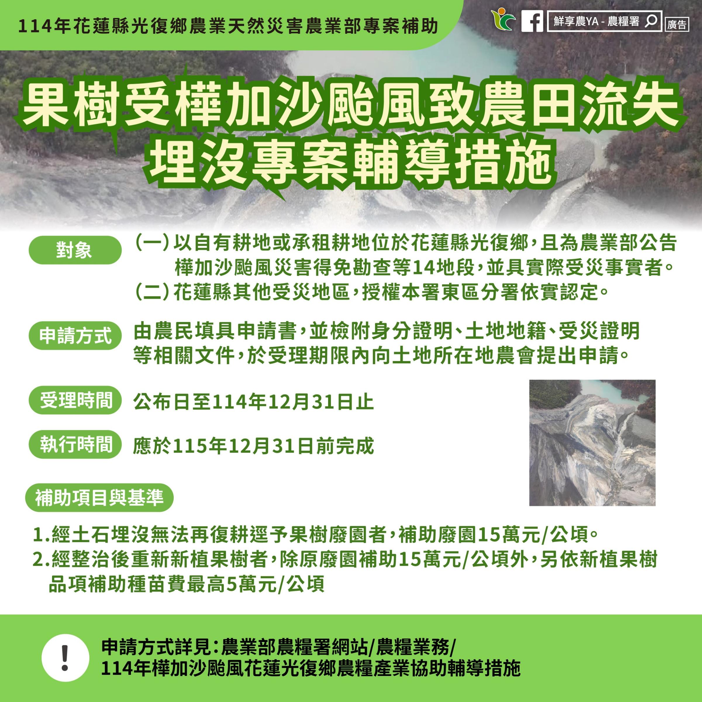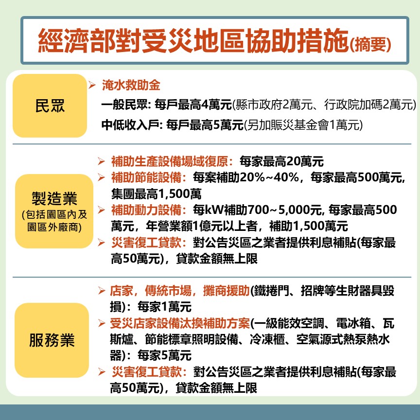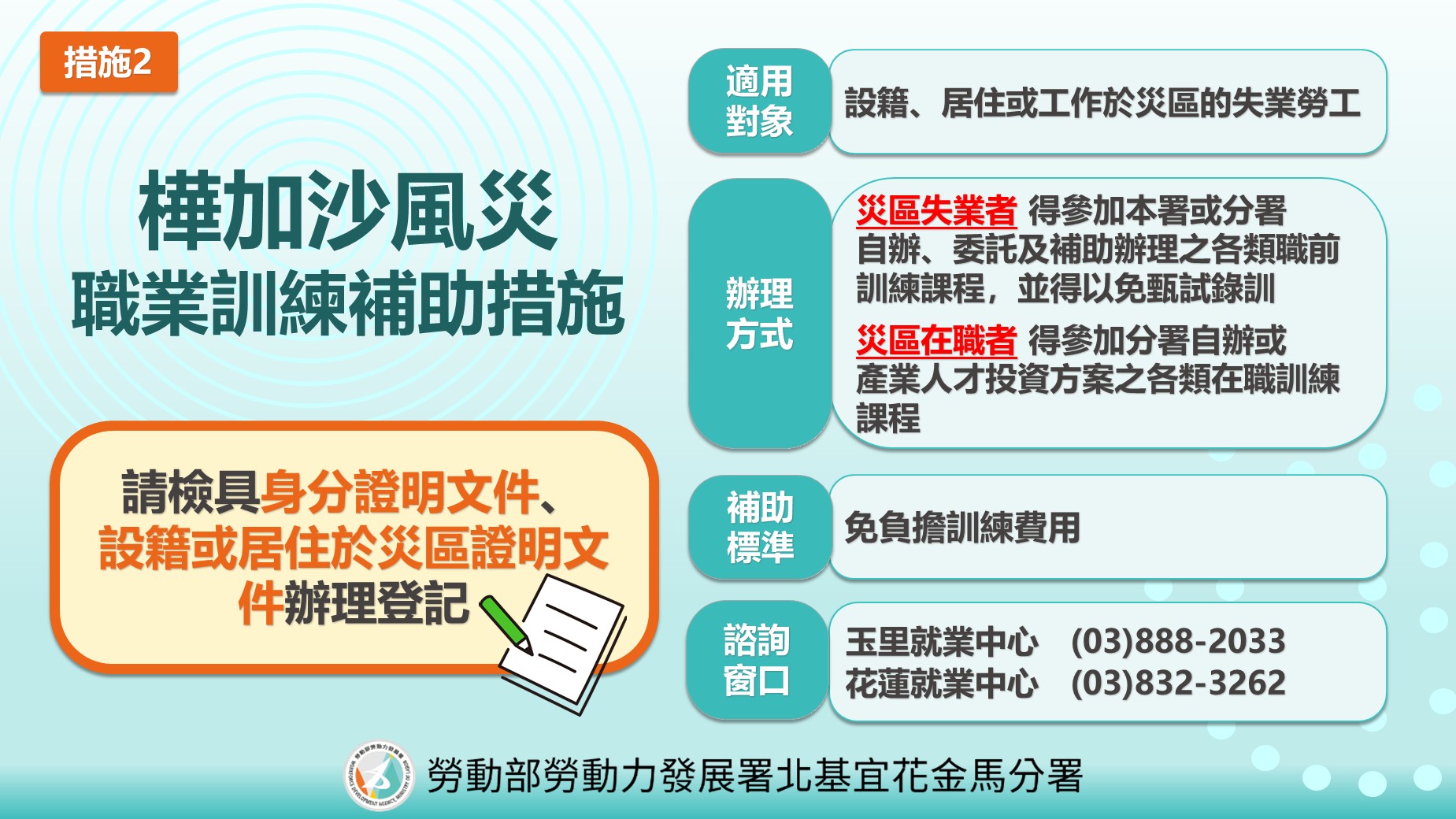 為利重大天然災害發生後即時揭露政府各項提供受災民眾之「災害救(協)助事項」,本會報已彙整相關機關(單位、機構)「花蓮馬太鞍溪堰塞湖專案災害救(協)助事項」公告連結「一站式網頁」,以強化災後復原資訊揭露並供民眾即時查閱。相關「災害救(協)助事項」如下所示,各部會措施請點以下相關連結。